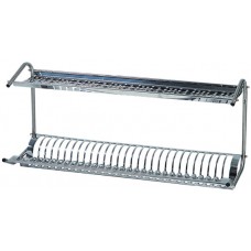 Châssis tubulaire en acier inox. Étagères à grilles en acier inox pour assiettes. Bac égouttoir à verres en acier inox. Cuvette d’égouttage en acier inox.